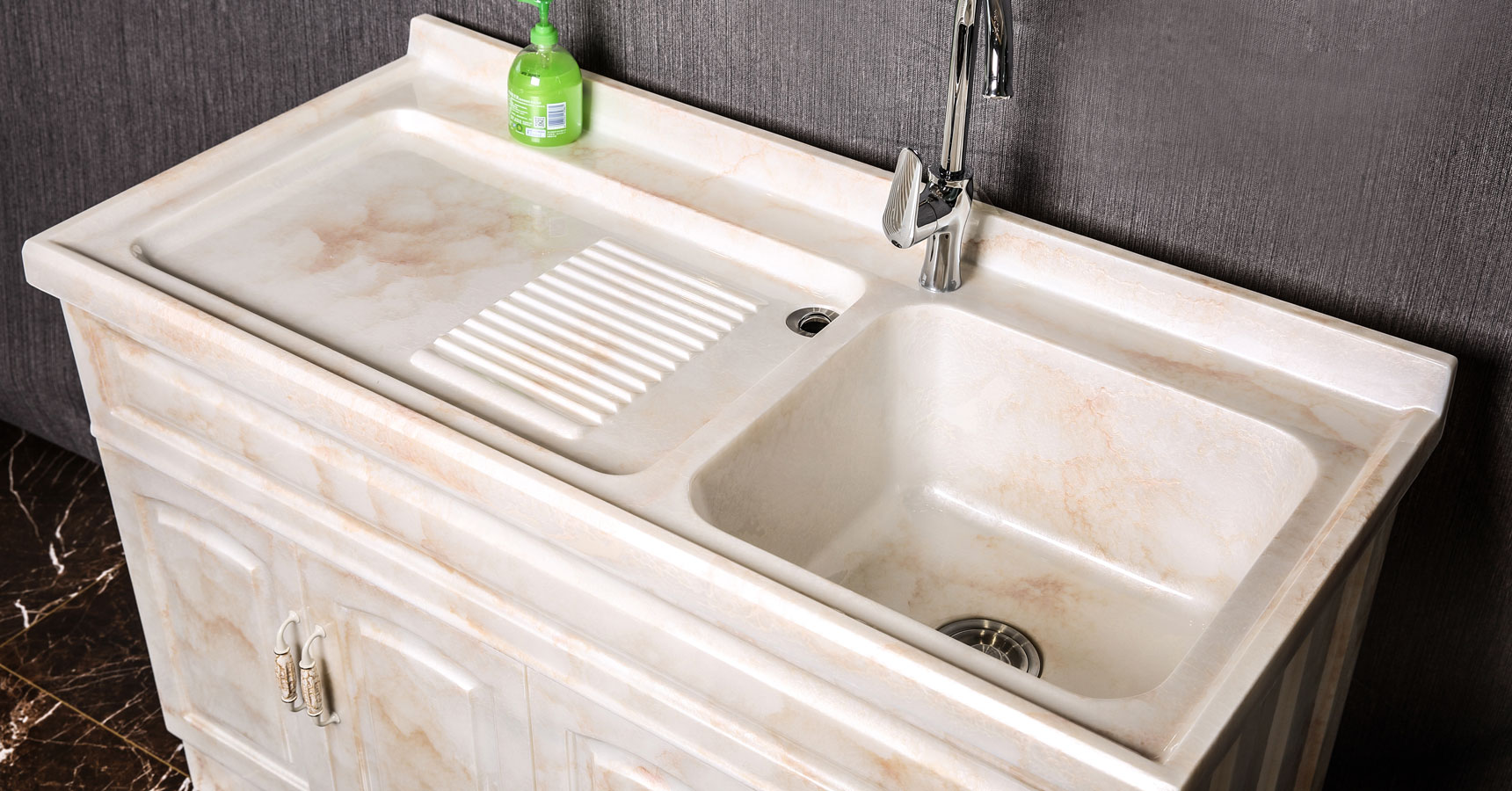 整體 SSC—101 規(guī)格:1300×600×835mm 臺(tái)面顏色:云彩黃 柜體顏色:云彩黃 可做規(guī)格:800—1500mm 盆體方向:左盆/右盆 可非標(biāo)定制(臺(tái)面與柜體花色可任意搭配)